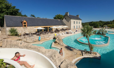 Grassy pitches with a surface superior to 110m²,water and drainage on the pitch, electricity 10A, delimited by flowery bushesand trees on the 5 stars well sheltered Castel and with sunny,shadowy or mi-sunny mi-shadowy pitches. Wifi access on every pitches. Included in the price: 5 stars confortable sanitaries, hot showers, heated swimming pool access, the Aquaparc of more than 600 m² of heated water with balneo, funtains, bubble baths, massaging funtains, slides hiden into the breton coast color rocks and in a exotical vegetation, cut prices on the 9 holes golf of the Orangerie de Lanniron (15% reduction) activities and children club... One family per pitch