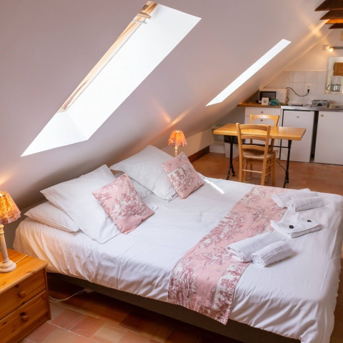 - Double bed (160x200) (duvet and pillows provided)