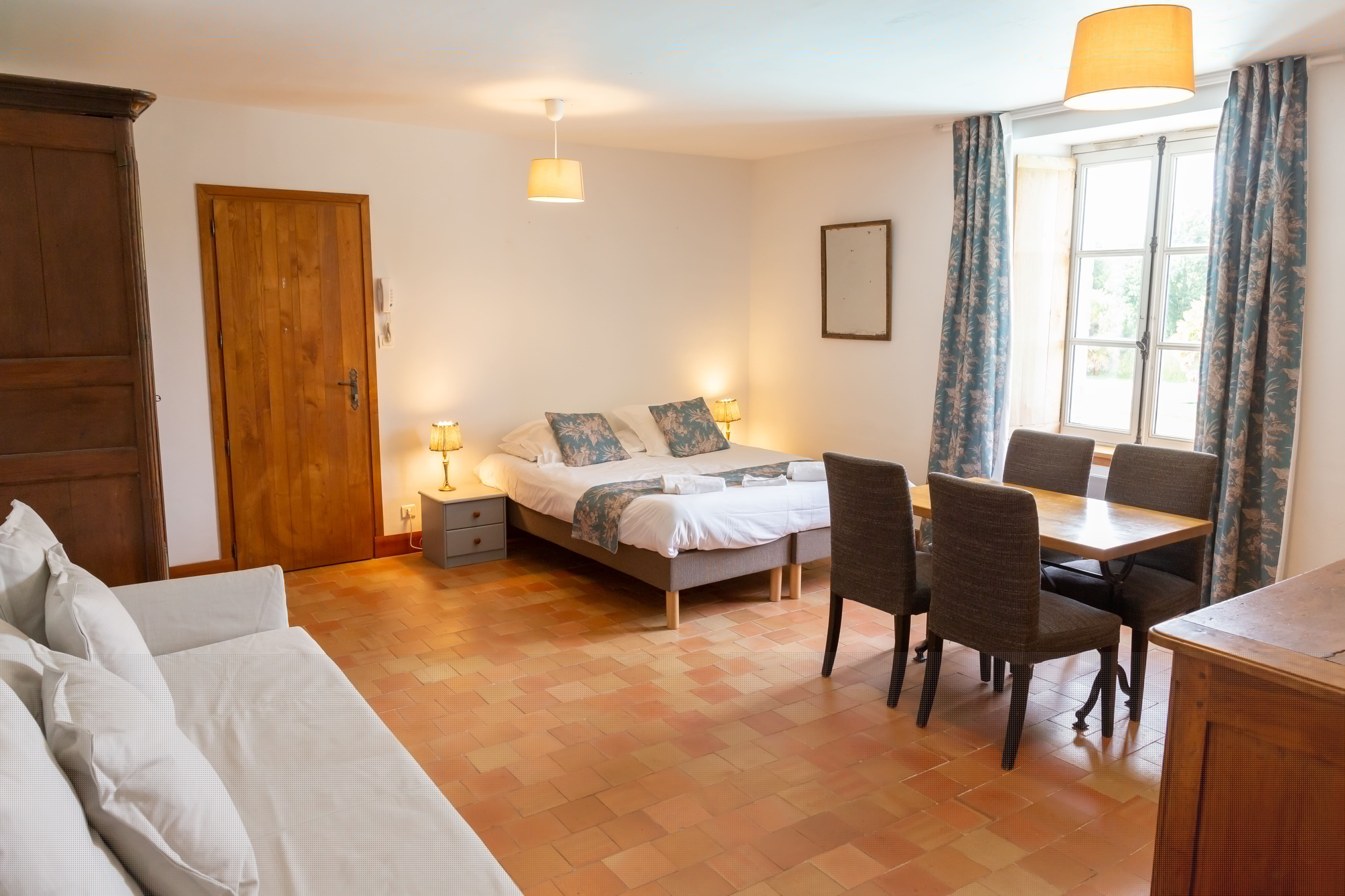- Bedside tables and lamps