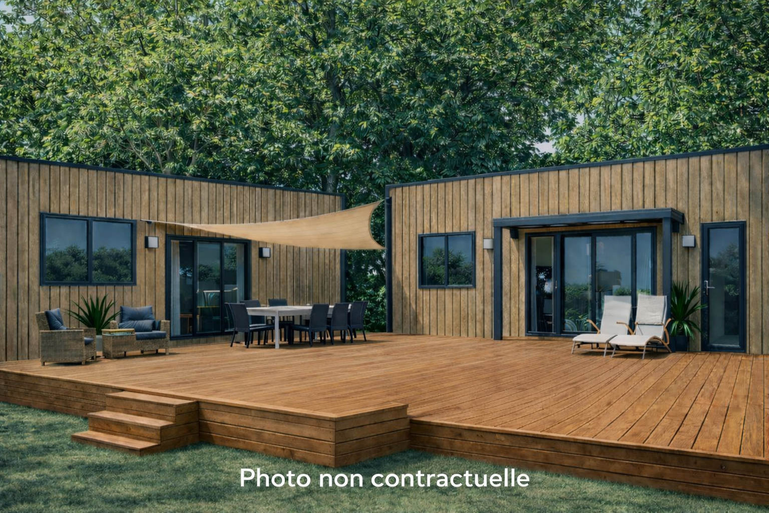 - Large semi-covered wooden terrace
