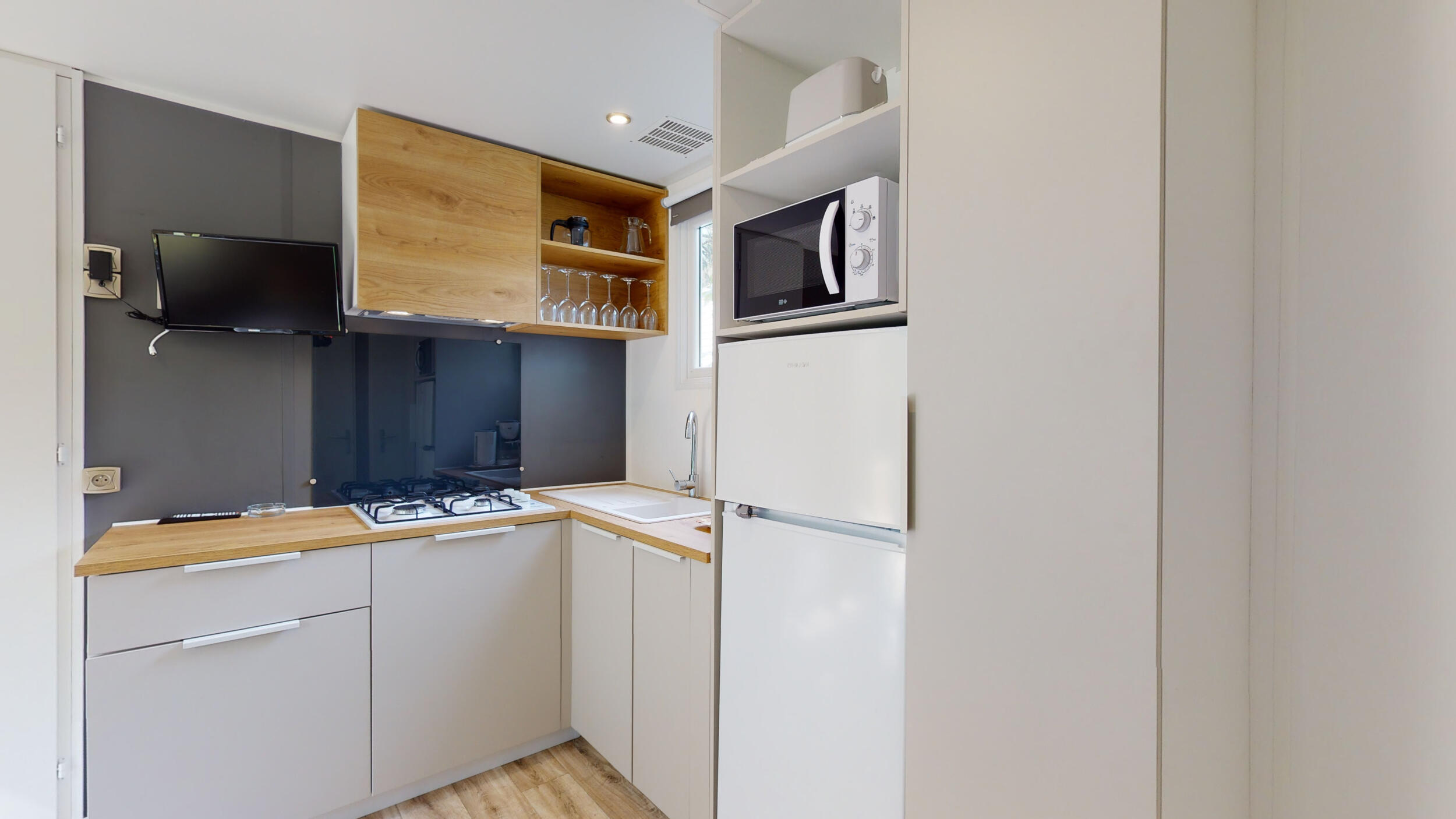 Cet hébergement accueille 4 personnes dans son intérieur très bien agencé. Il comprend : 2 chambres, une salle de bain et un beau séjour avec cuisine.